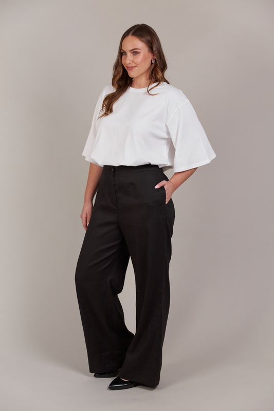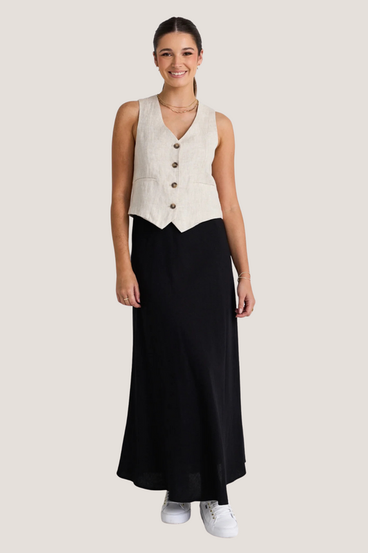 Lagos Black Linen Floaty Bias Cut Maxi Skirt