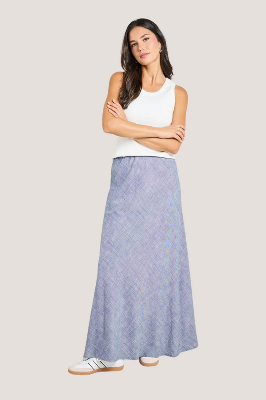Lagos Chambray Blue Floaty Bias Cut Maxi Skirt