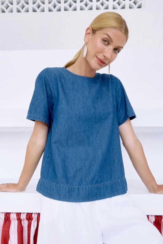 Meander Cornflower Blue Linen Boxy SS Shirt
