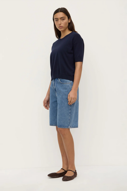 Vanya Cotton Cashmere Knit Tee | True Navy
