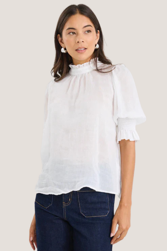 Verse Ivory Sheer High Neck Short Sleeve Top