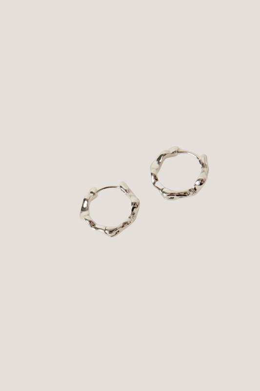 Wavey Hoop Rhodium Earrings