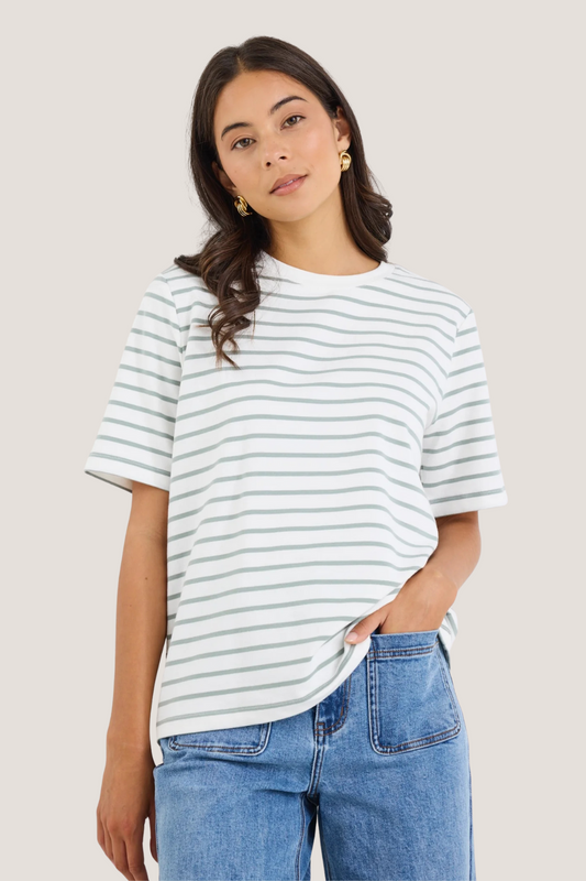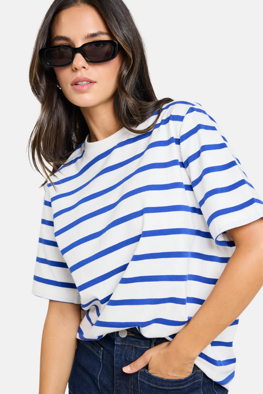 Binding Pale Blue White Stripe Boxy Fit Tee