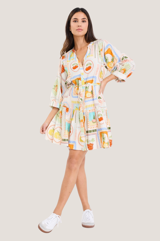 Adoration Tropical Postcard Short Sleeve Button Front Mini Dress