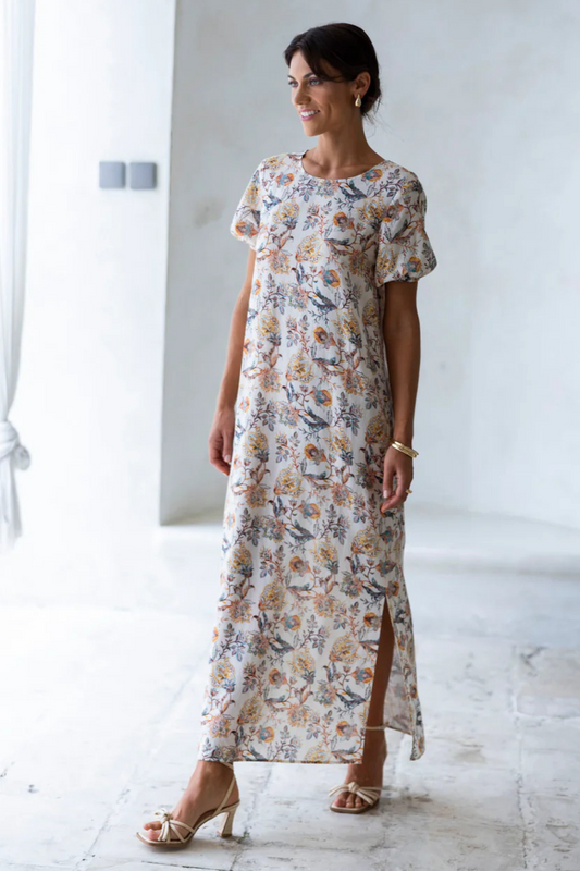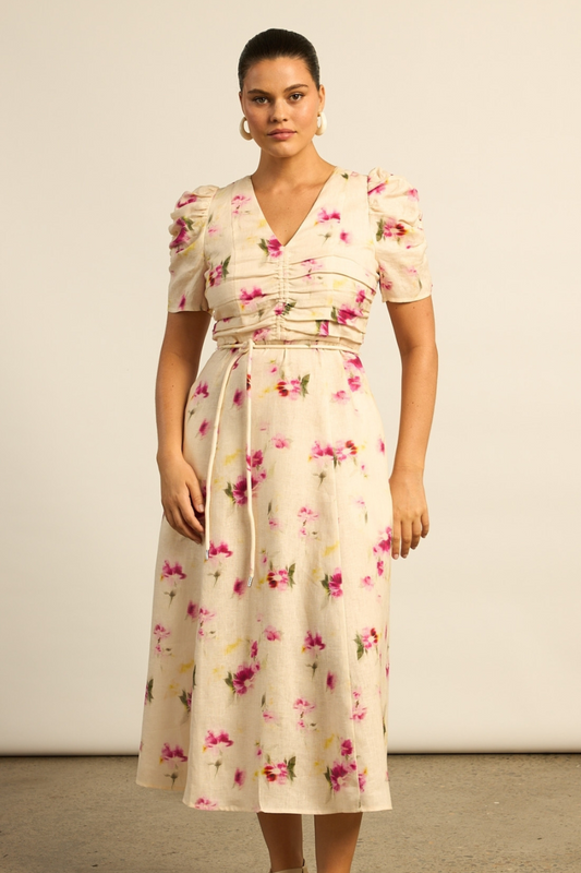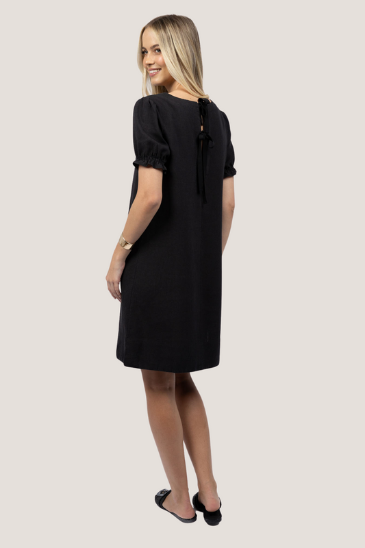 Adelaide Cherry Linen Puff Sleeve Panelled Mini Dress