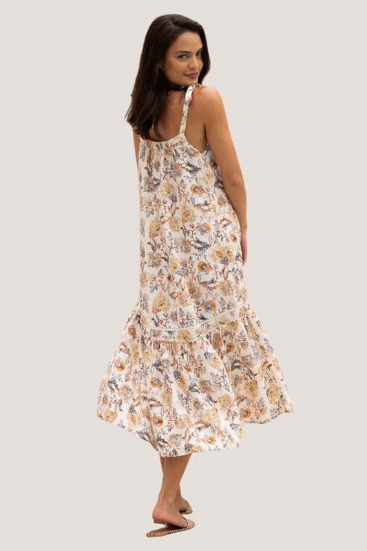 Sentiment Tropical Postcard Long Sleeve Maxi Shirt Dress