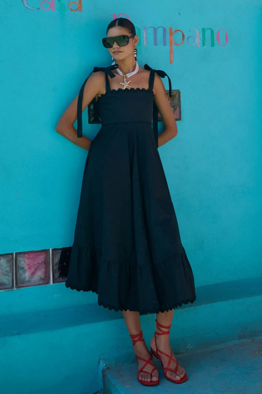 Spotlight Black Linen Blend Off Shoulder Flare Midi Dress