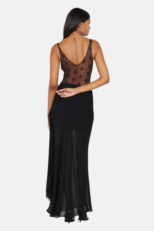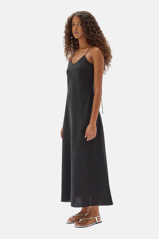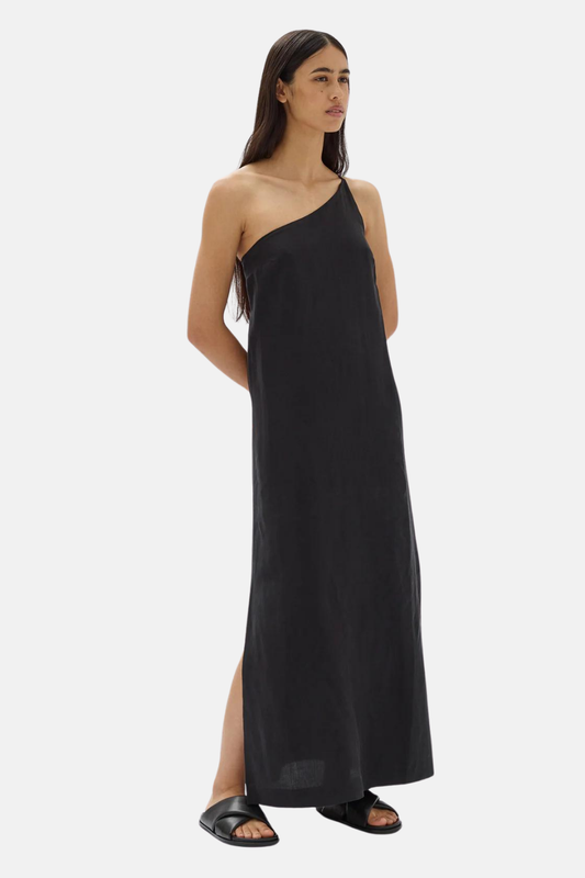 Farriday Linen Silk Asymmetric Midi Dress | Black