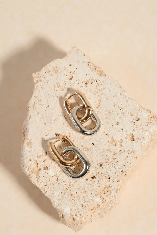 Oval Drop Gold + Rhodium Earrings