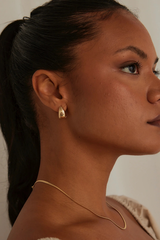 Pleated Wide Gold Huggie Earring
