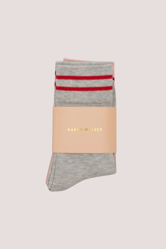 Runaway Girl Socks 2 Pack Light Grey Blush/Red One Size