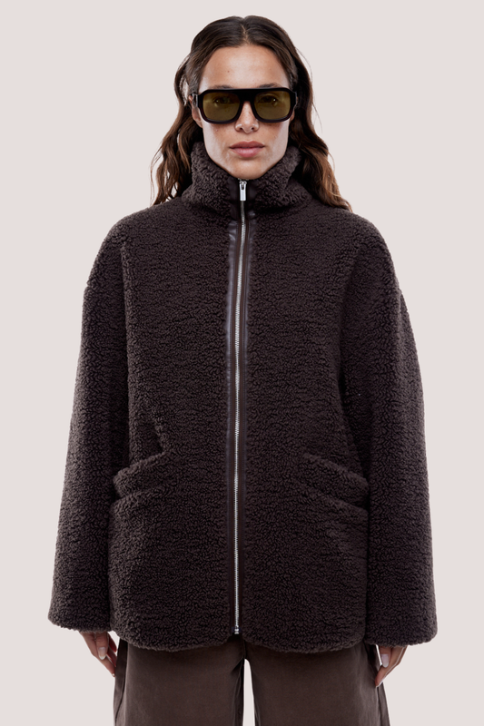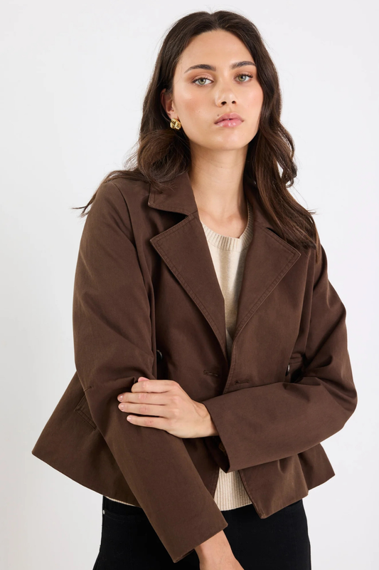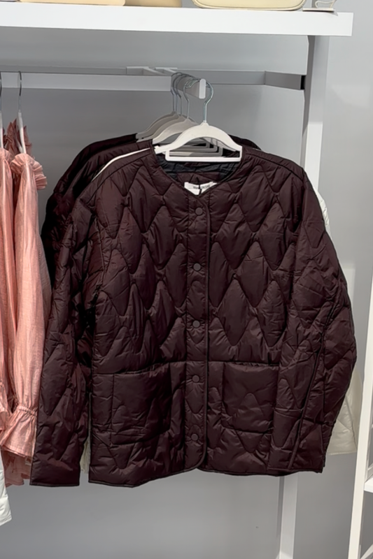 Frankly Chocolate Boxy Snap Front Puffer Jacket