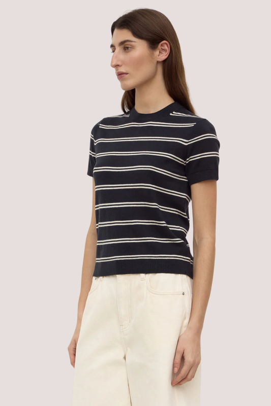 Allison Stripe Cotton Cashmere Tee | True Navy/Cream