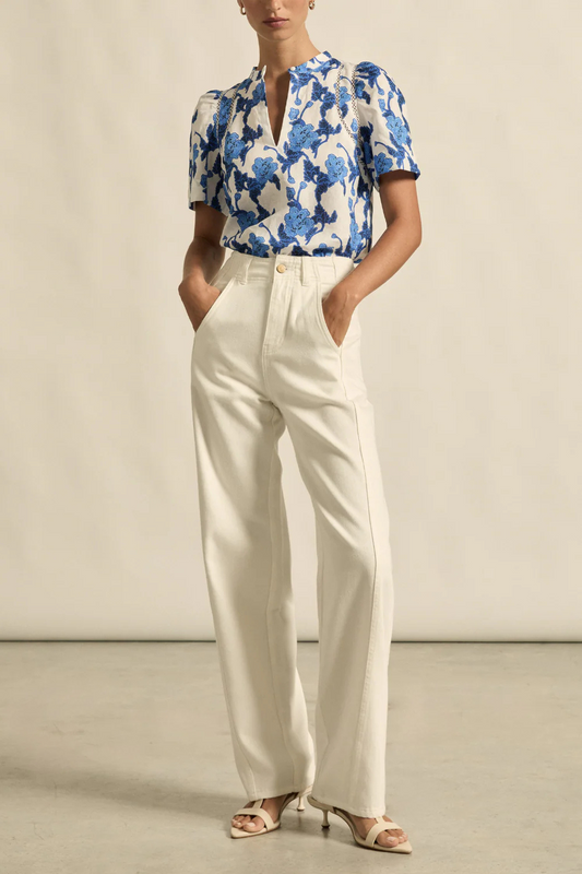 Verse Ivory Sheer High Neck Short Sleeve Top