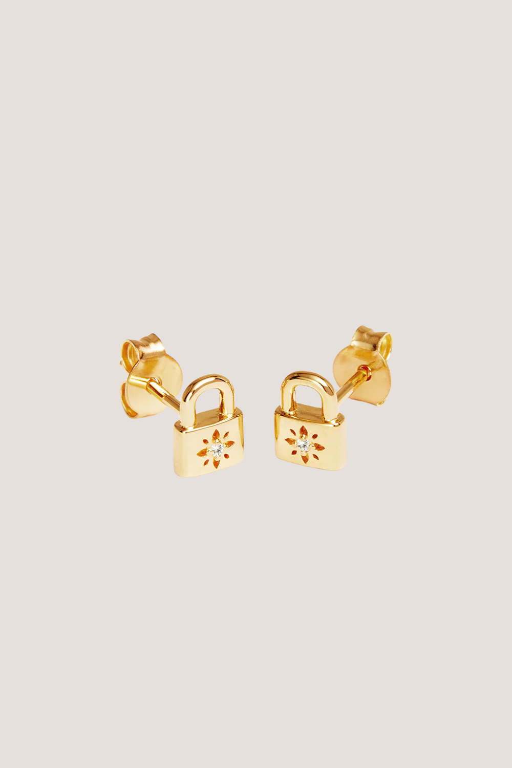 18k Gold Vermeil Crystal Lotus Padlock Stud Earrings