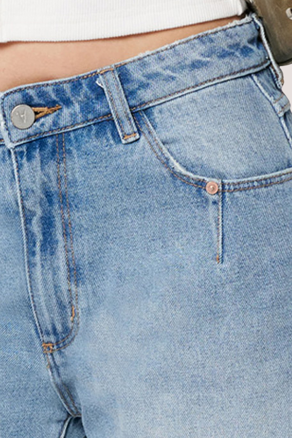 - Featuring a mid-rise waist that sits just below your belly button, these jeans make statement styles look easy