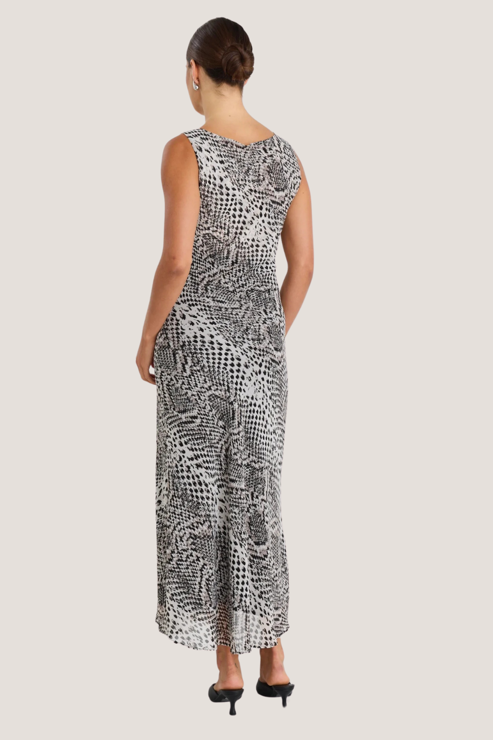Allure Charcoal Snake Cowl Neck Bias Slip Dress - Charcoal Snake /