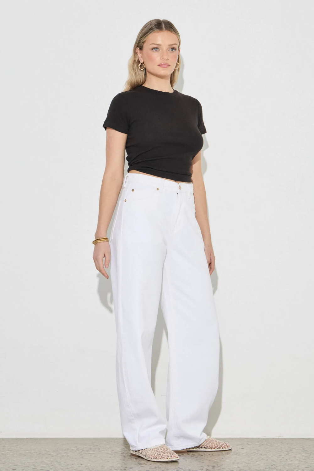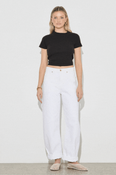- Has a longer leg than our Gigi Barrel, finishing just below the ankle which can be rolled up for a more cropped look