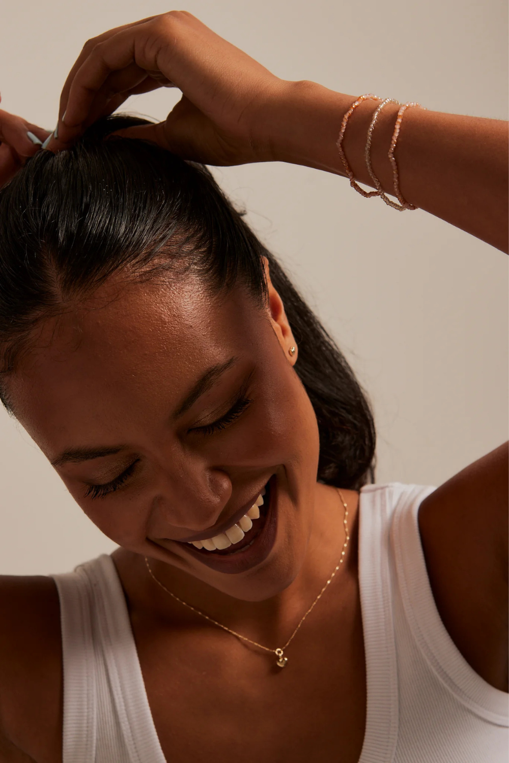 Stay sweet in this peach beaded set of bracelets from Humble + Heart. This set is sure to see you through beachy summer days all summer long!