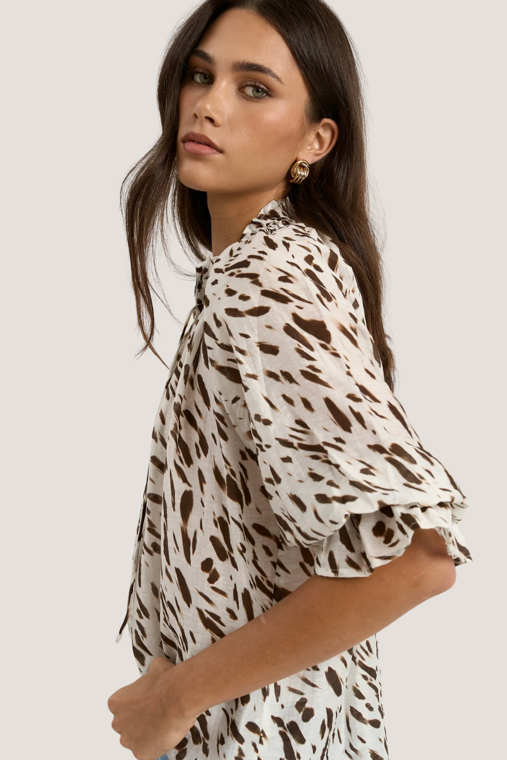 Certainty White Chocolate Animal Shirred Neck SS Top