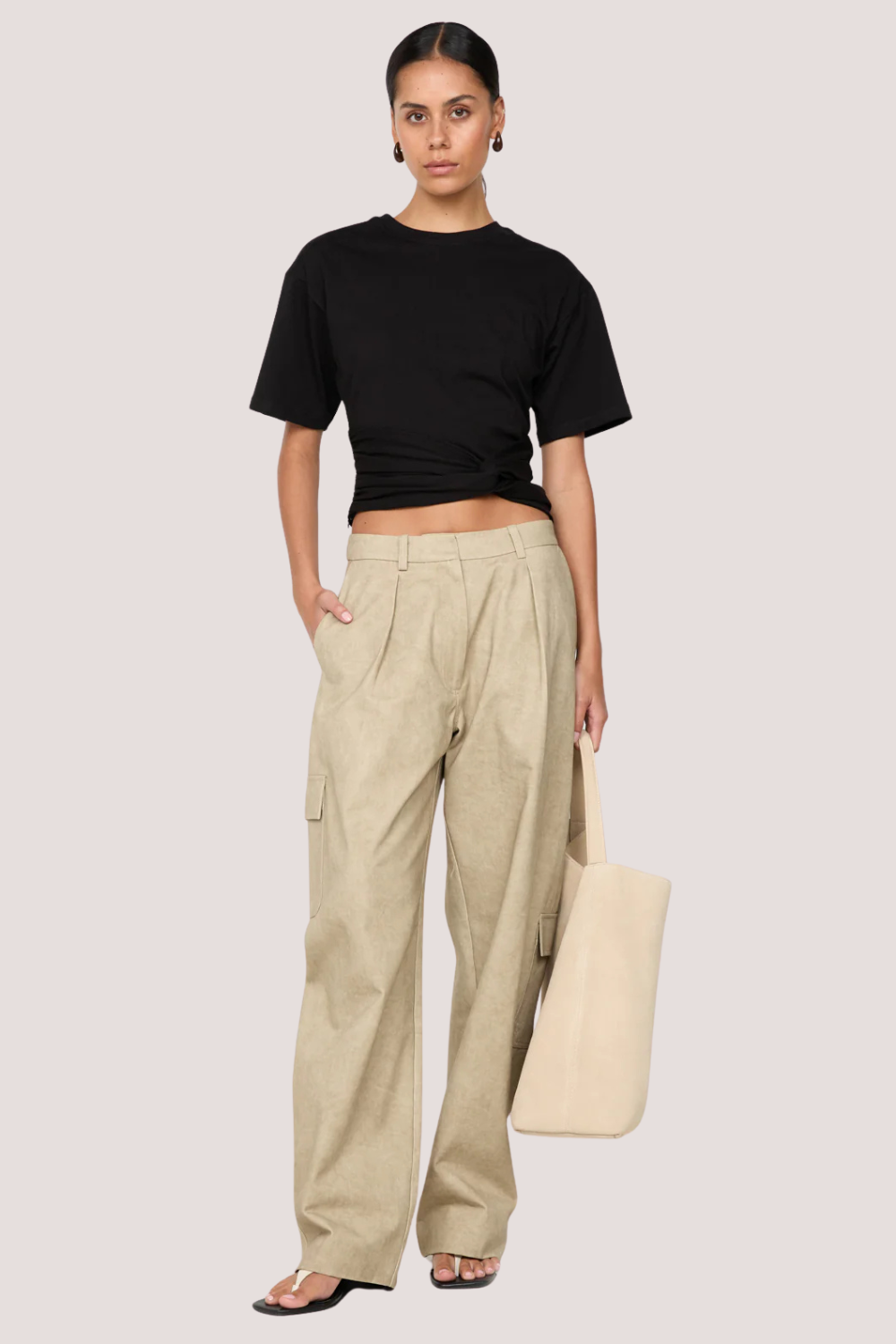 Cyprus Twist Tee in Black. This chic jersey tee, with its relaxed boxy fit and a unique twist detail at the waist, is perfect for a stylish night out or elevated day-to-night styling.