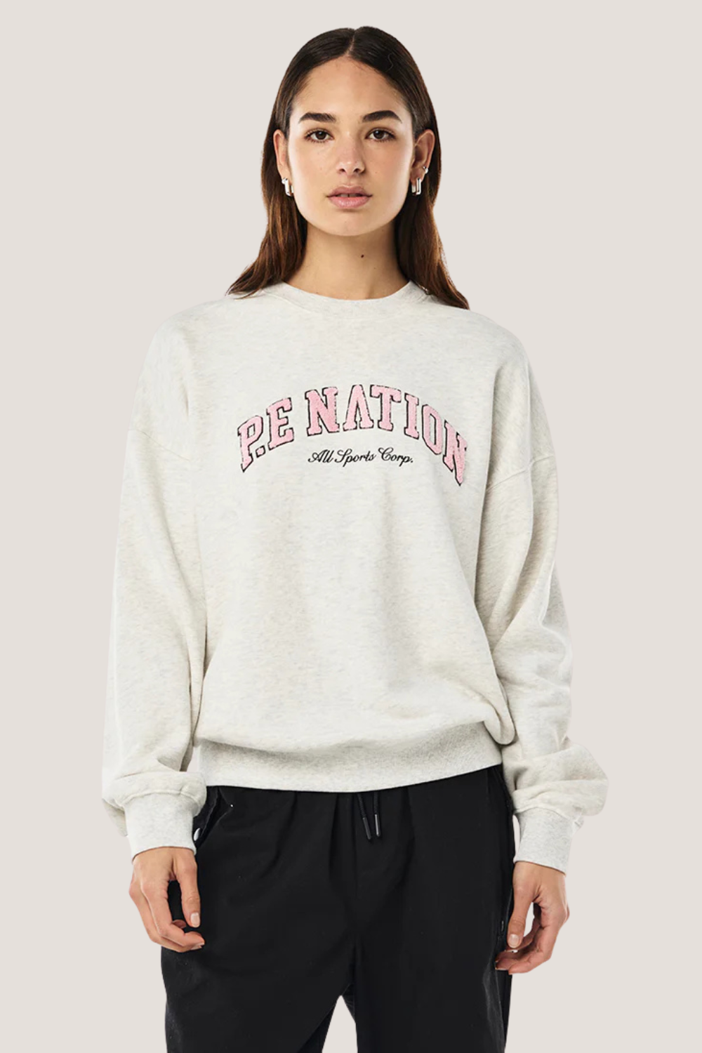 The Heritage Sweat in Grey Marle is a P.E Nation Exclusive. An elevated essential for building your basics wardrobe. This relaxed fit crew neck sweater features a custom P.E Nation boucle graphic at centre front. For the complete set, style this sweat with your favourite P.E Legging.