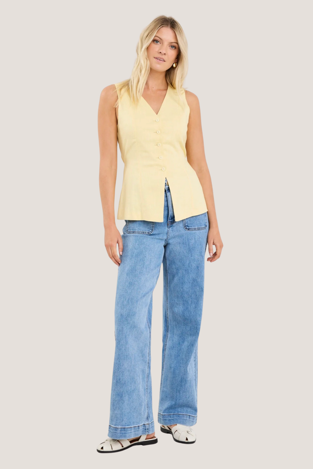 Latitude Lemon Linen Blend Fitted Longline Vest