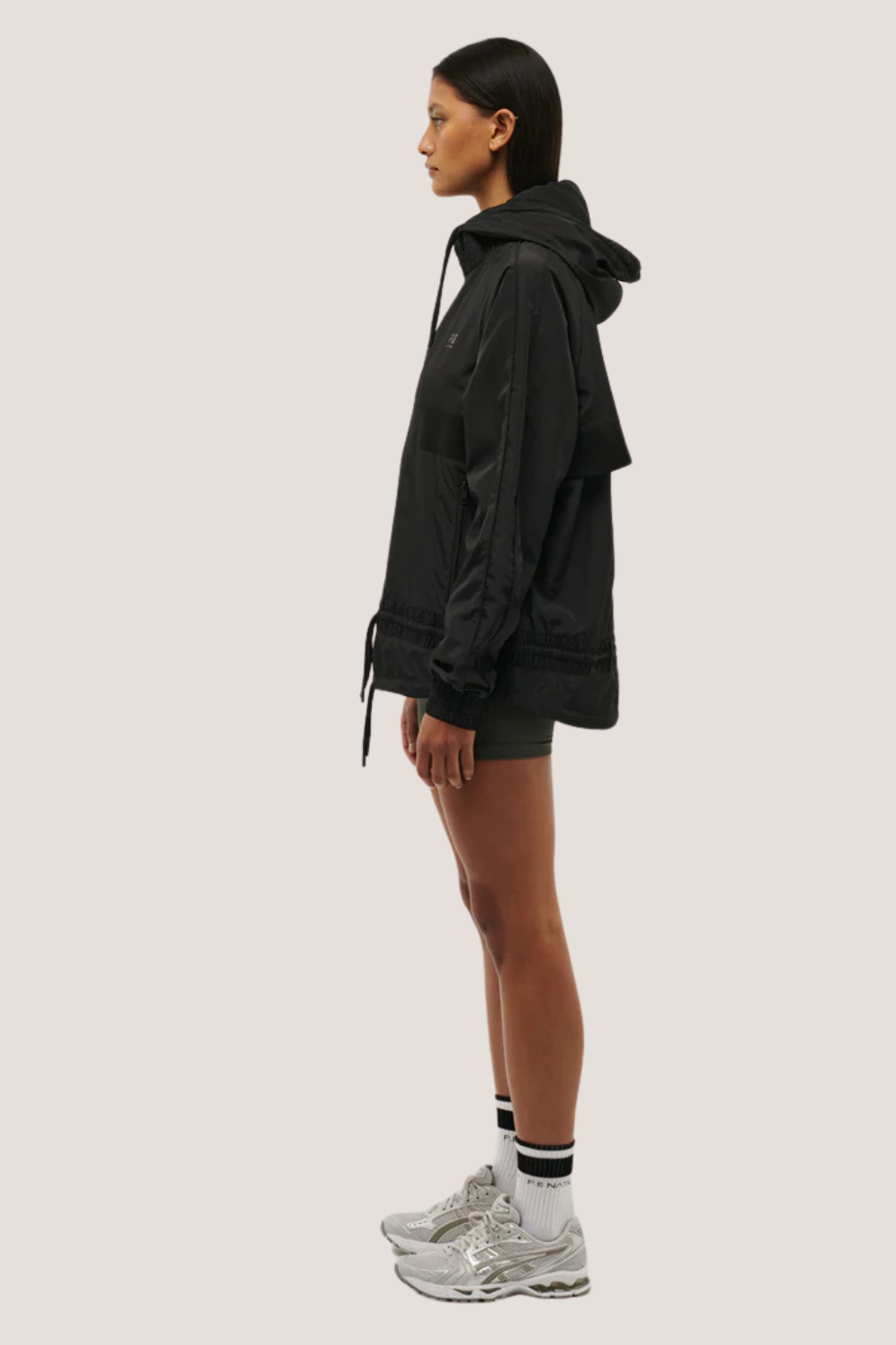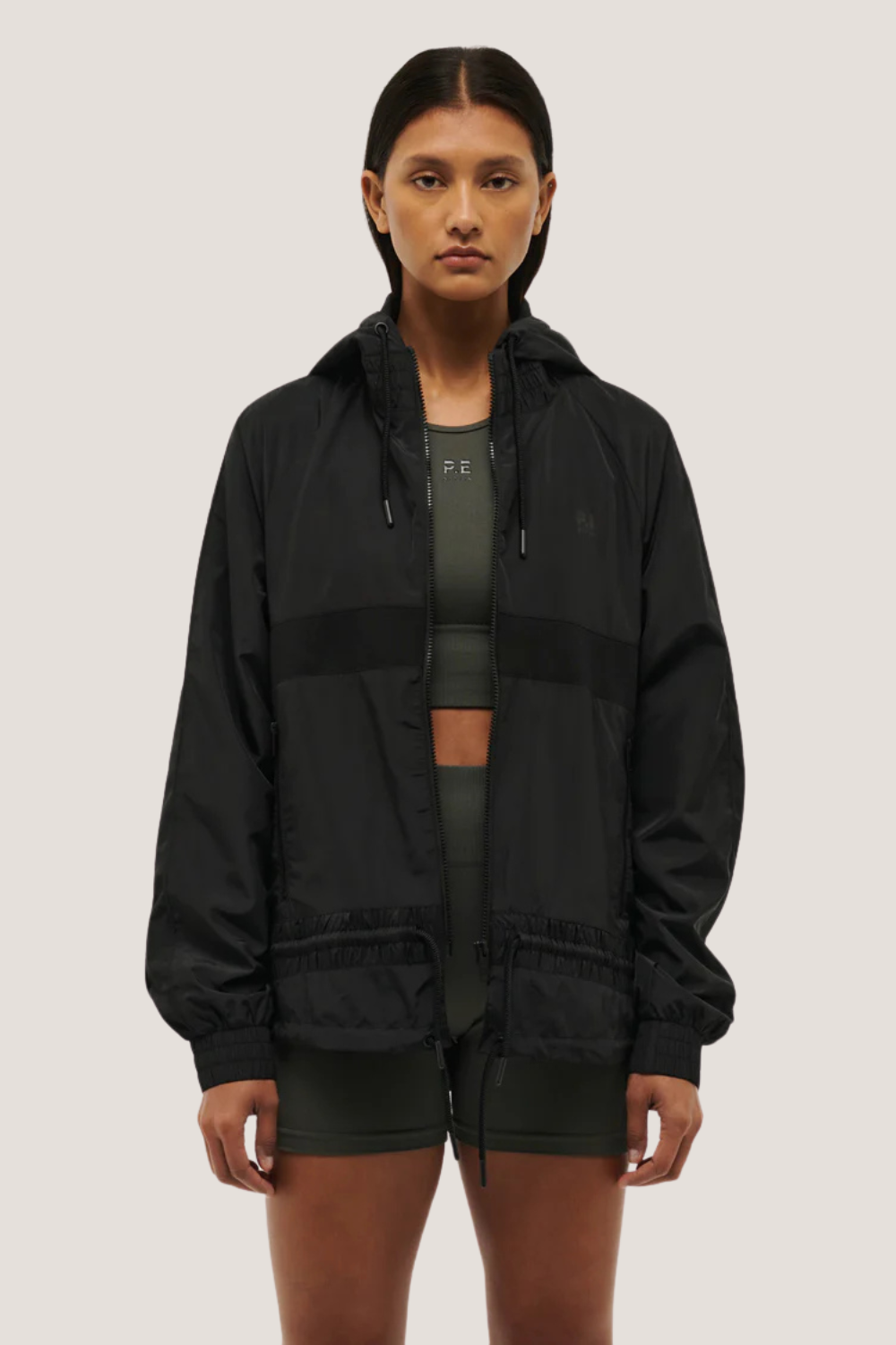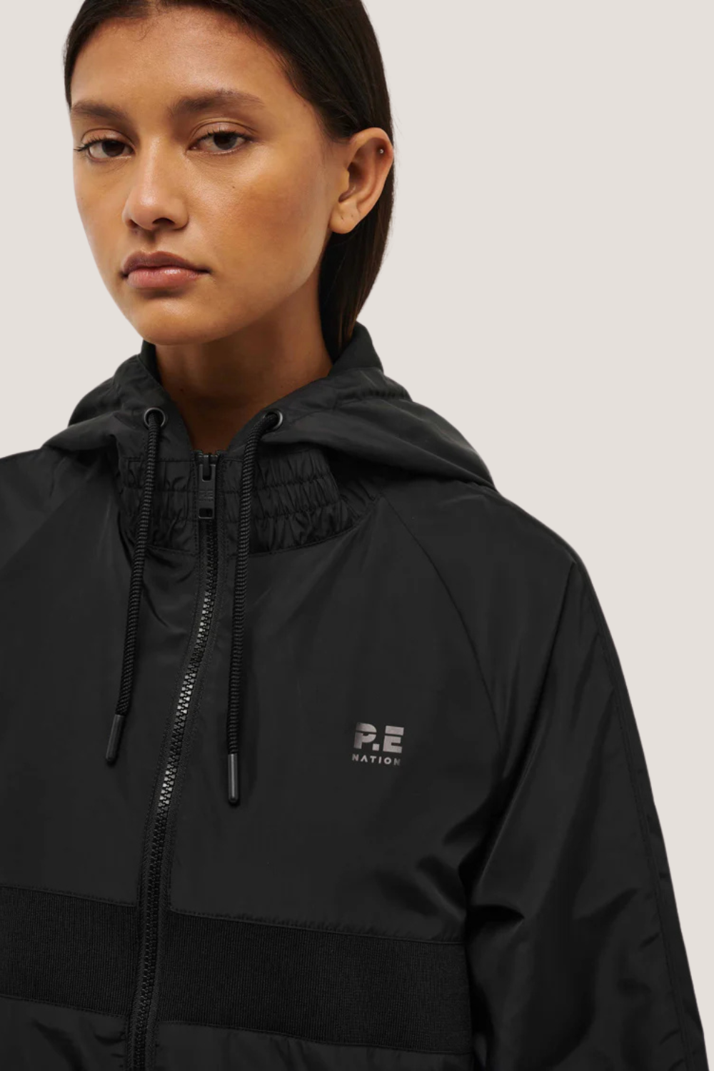 The Man Down Jacket in Black comes as part of our BASELINE Collection. Made from our signature water resistant spray fabric, this best selling style features contrast panelling on the body, zip up pockets and a drawcord waist and neckline. Perfect for layering, wear this wardrobe staple with activewear for the ultimate P.E Nation athleisure look.