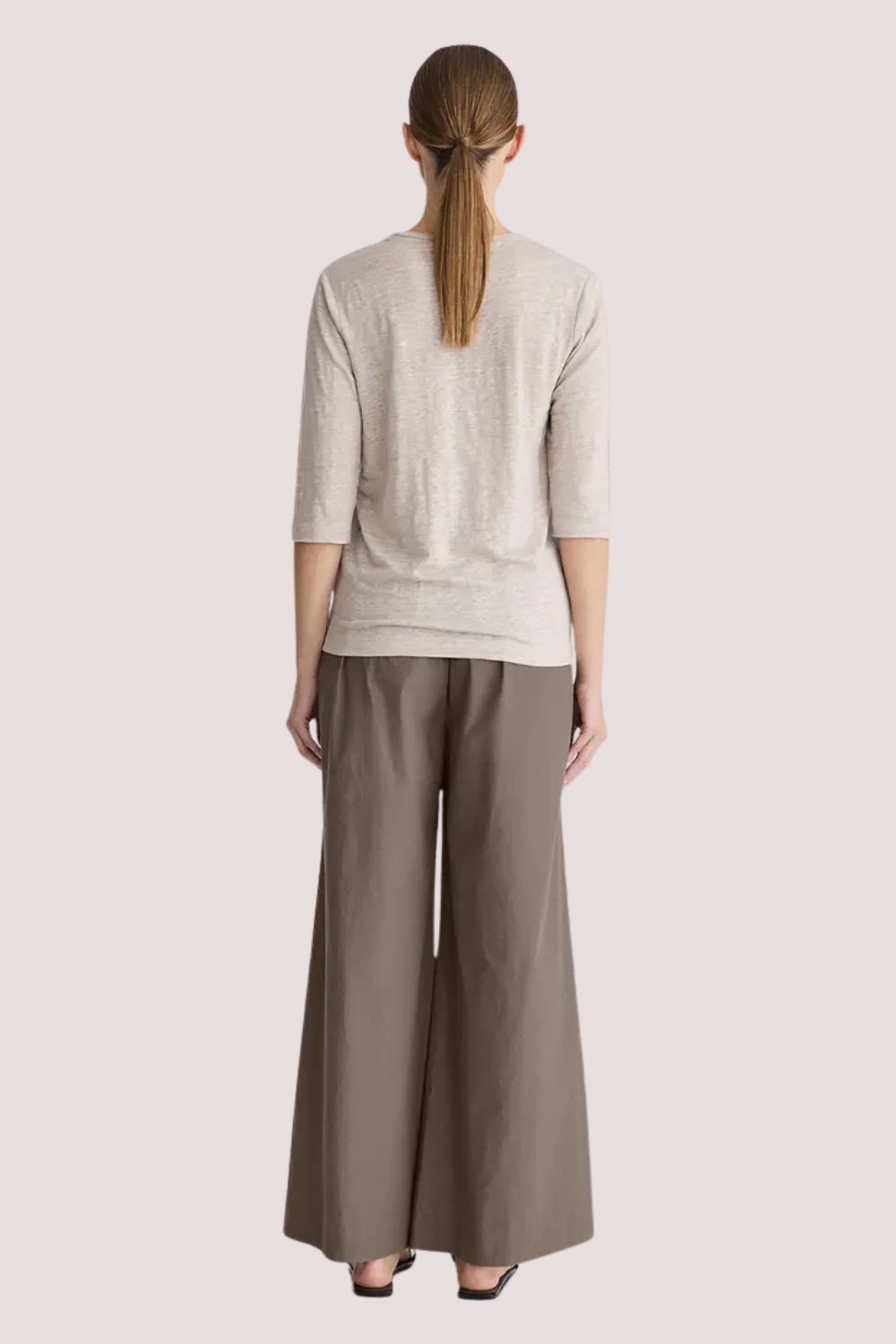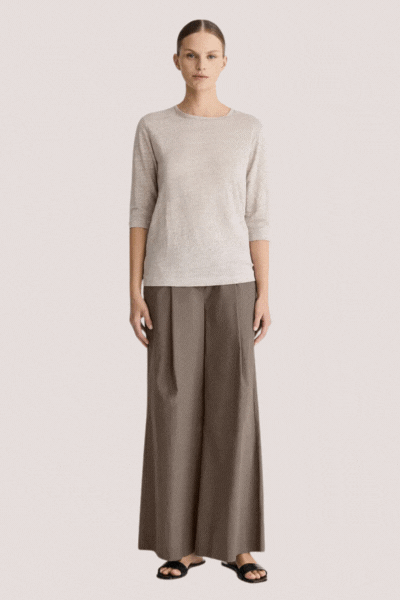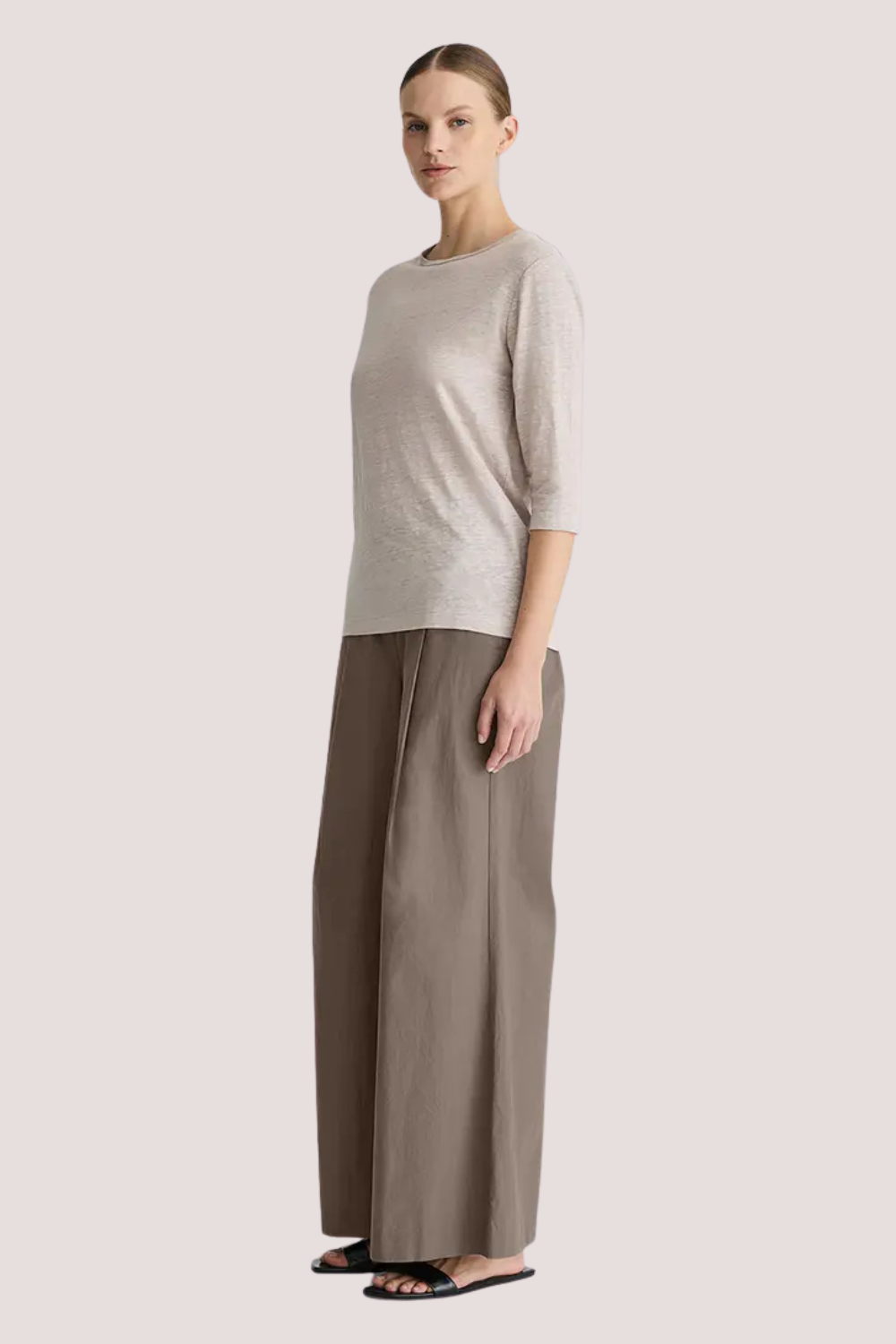 This three-quarter length sleeve, crew neck t-shirt is cut for a flattering, relaxed fit. Made from slubbed mid weight linen jersey, this style has a refined neckline and is cut square at the hem. Dressed up or worn casually, this is an item you will reach for almost every day.