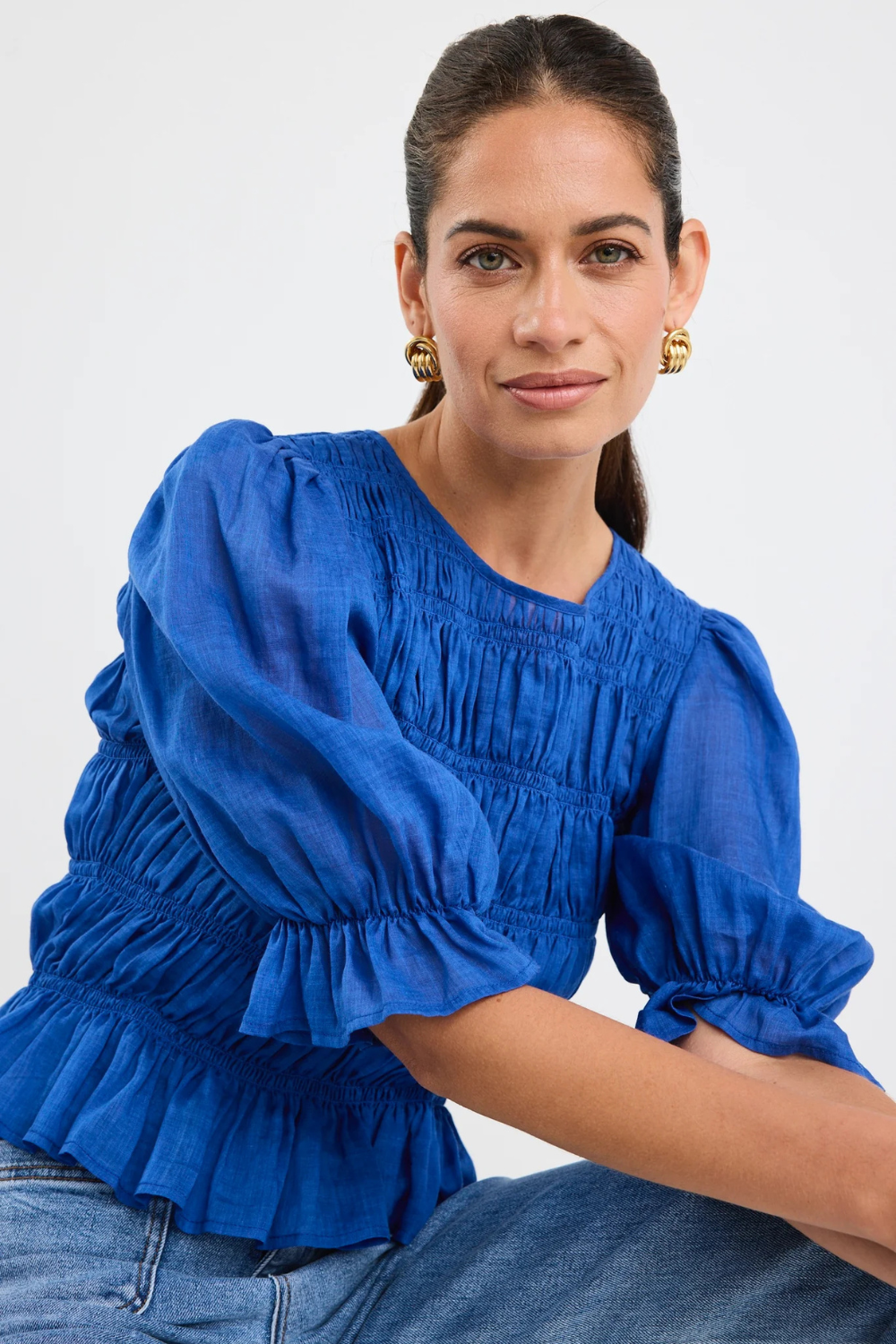 Bring effortless charm to your wardrobe with this beautifully shirred top from Ivy + Jack. Crafted from 100% cotton, it feels soft against the skin while the natural fibre keeps you cool and comfortable all day. The shirred bodice and gentle frill sleeves create a flattering silhouette that moves gracefully from casual catch-ups to elegant dinners.