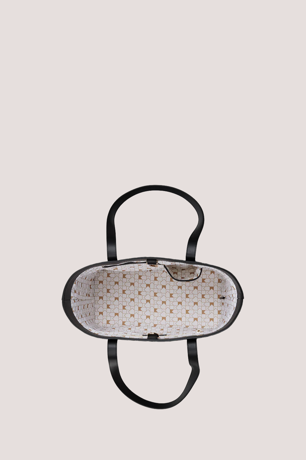 Elevate your everyday carry with the Monogram Tote, crafted from 100% nappa leather. This elegant tote features a lined interior designed for effortless organisation, including two open inner pockets and a zipper pocket for added security. With durable double straps and metal feet for stability, it combines practicality with elegance. The convenient clip closure ensures easy access to your essentials, making this tote the perfect companion for any daily adventure.