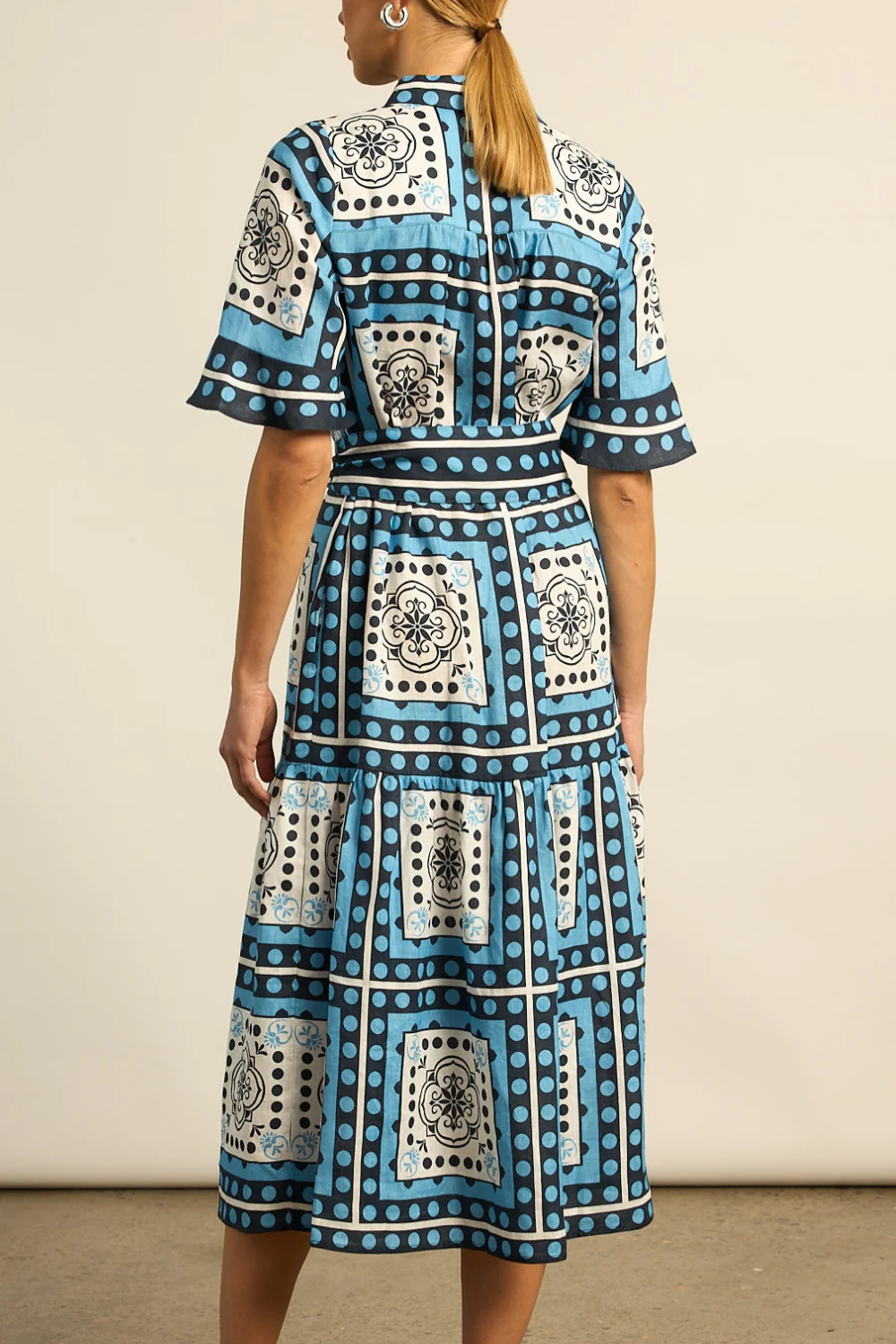 the oasis dress combines elements of femininity, versatility, and refinement. crafted in a striking scarf print inspired it captures a vintage european aesthetic, this piece is perfect for resort styling. See product details below.