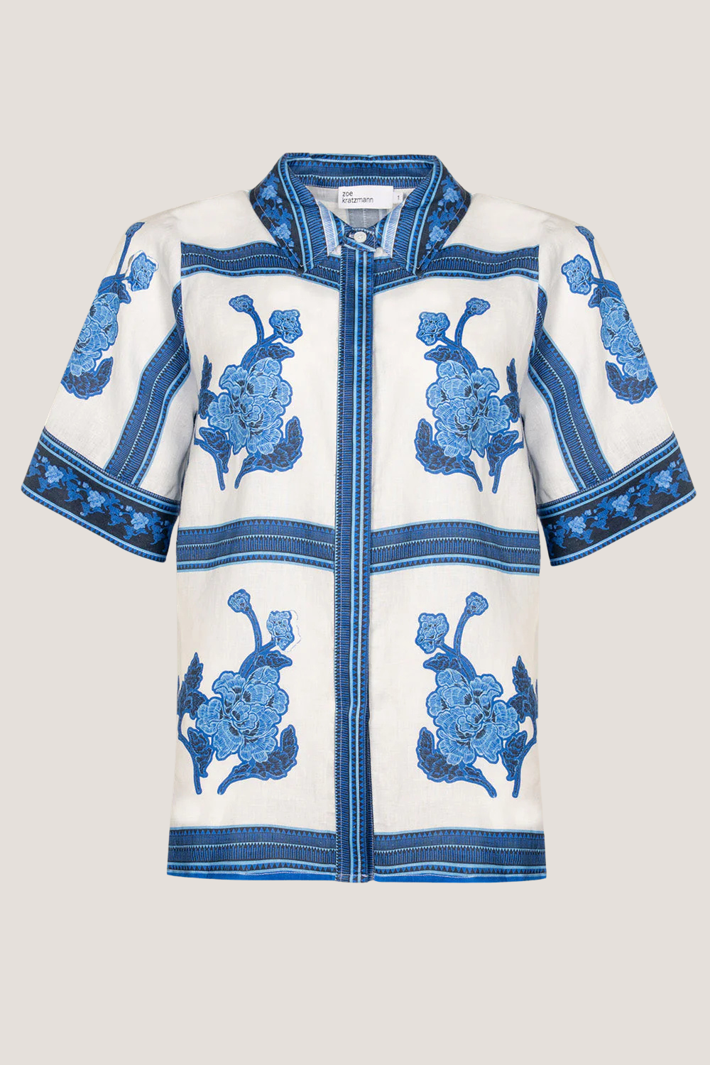 fresh and directional, the pixel top is a celebration of clean lines and elevated details. the concealed placket and crisp collar balance ease with modern polish.