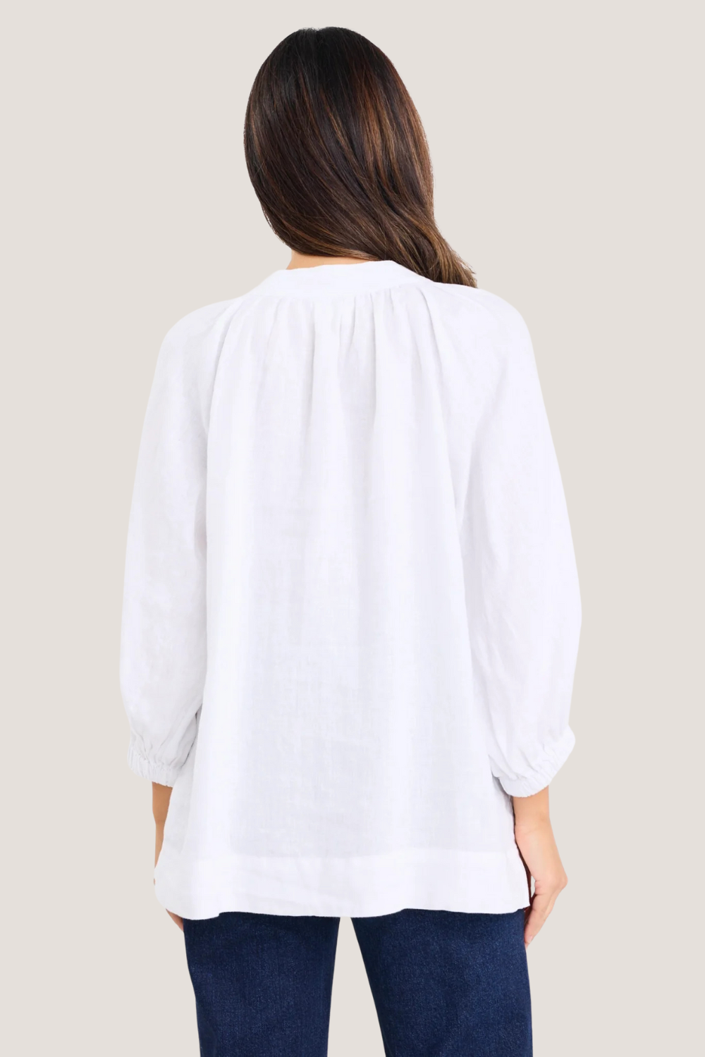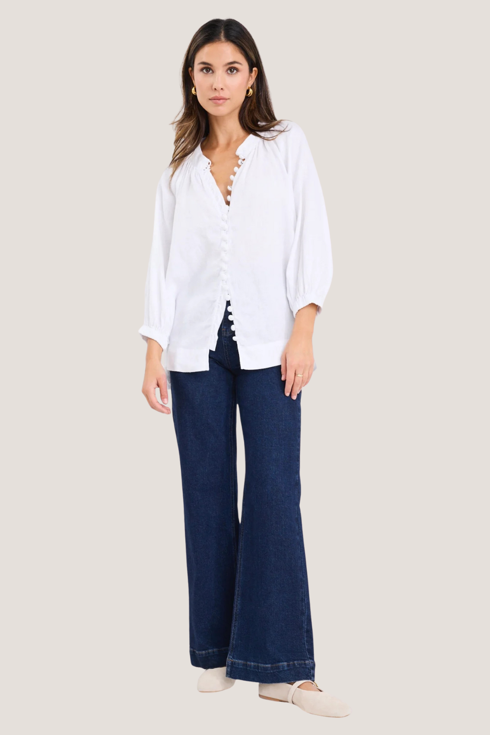 Effortlessly refined, the Restoration Linen Button-Front Top is your go-to for elevated everyday wear. Crafted from 100% garment-washed linen, this breathable piece features a relaxed silhouette and softly puffed mid-length sleeves for a timeless, feminine touch. A row of fabric-covered buttons adds a textural detail down the front, while subtle gathering at the neckline lends gentle volume and movement. Pair it with your favourite denim or tailored trousers for an easy, polished look.