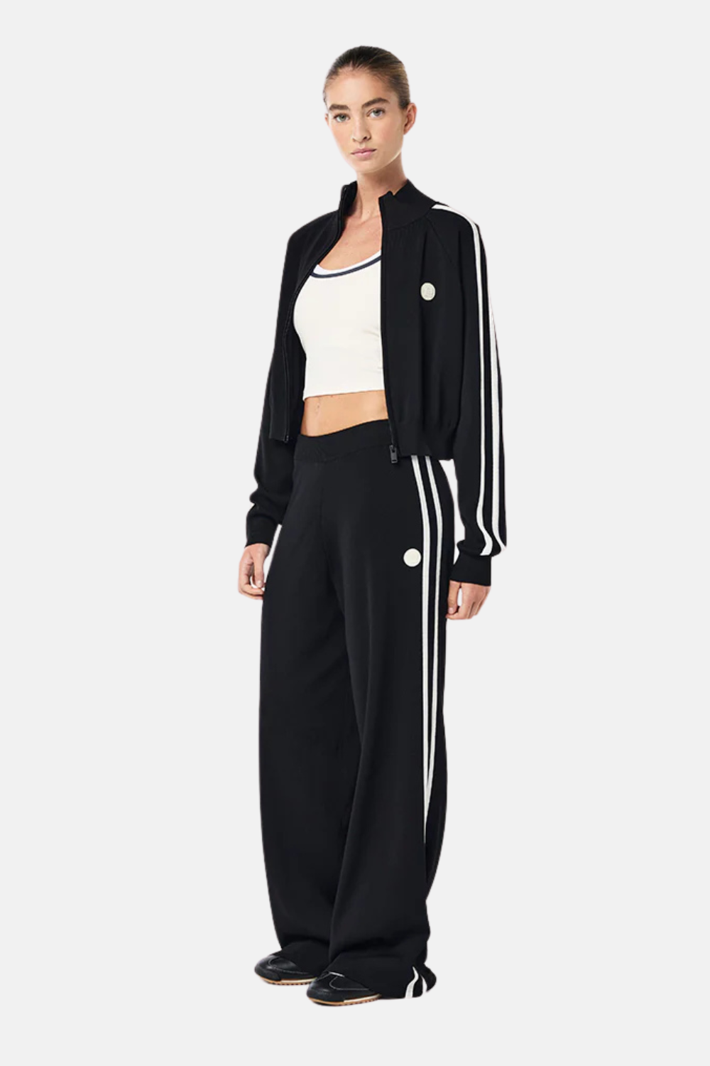 The Retreat Pant in Black comes as part of our FUTURE MODERN Collection. This pant is made of a midweight knit fabrication and features an elasticated waistband and a contrast panelling down the side . Wear these pants with a Forward Tank and matching Retreat Jacket for an elevated athleisure look.