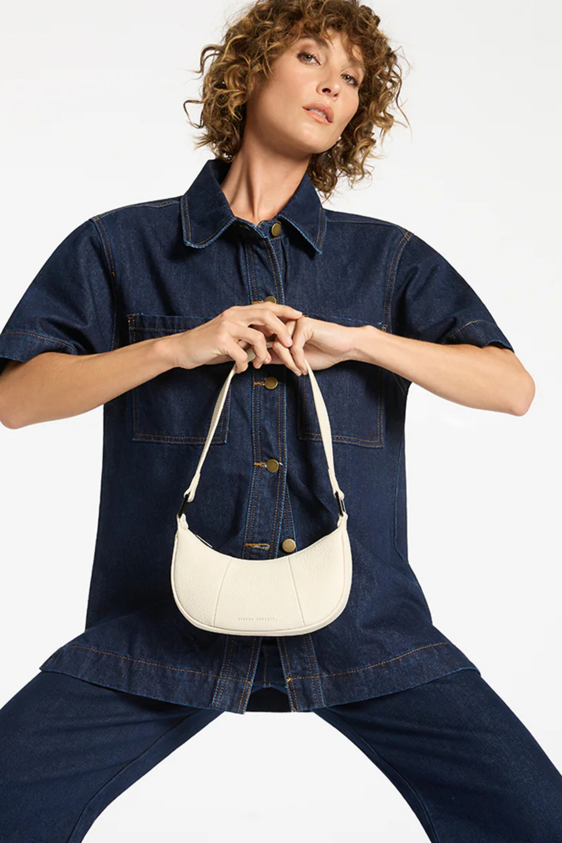 'Solus', a piece in collaboration with Hayley Andersen. Inspired by far-flung travels and made for enjoying every waking moment under the sun. Featuring our new custom embossed gunmetal strap buckles and designed to sit snug under arm for hands free travels.