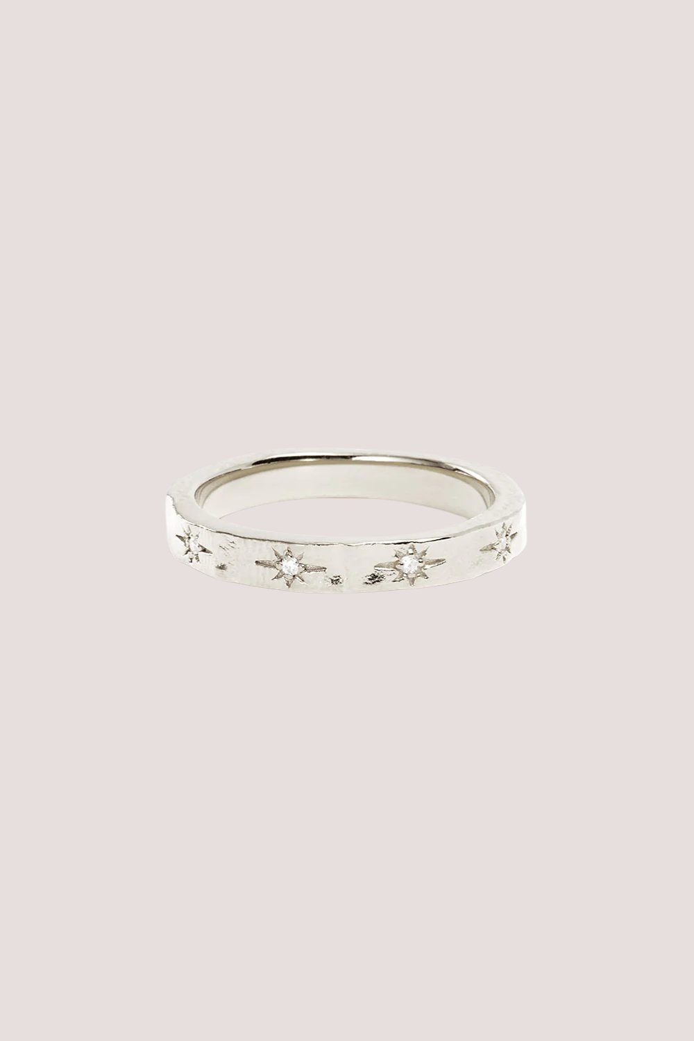 Ring, a subtly battered adornment inspired by the night sky and the celestial bodies that eternally guide us.