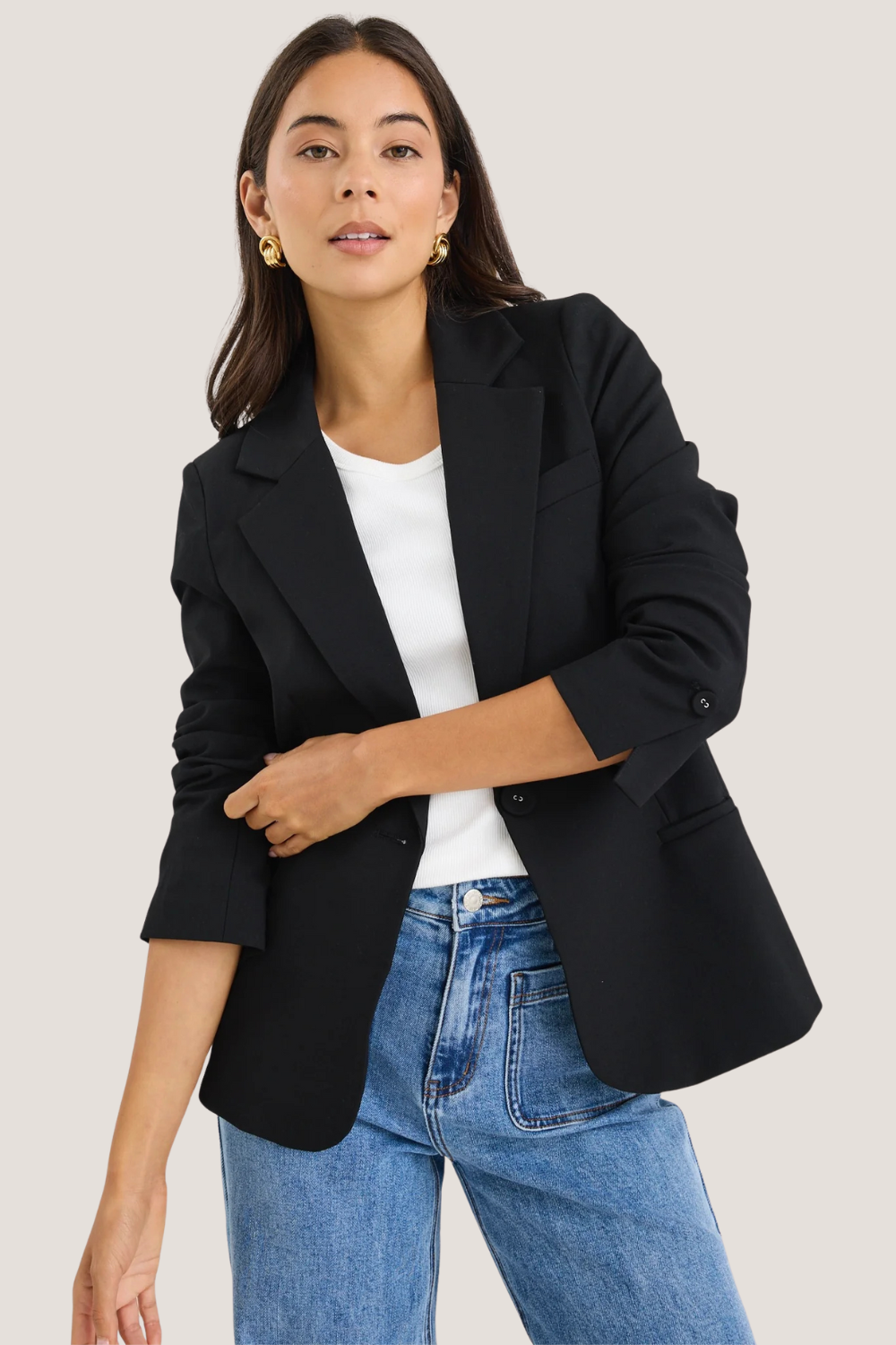 A power piece that exudes effortless sophistication, the Suave Fitted Blazer is a must-have for a polished wardrobe. Its tailored silhouette and sleek lapels create a structured yet flattering fit, perfect for both workwear chic and off-duty layering. Whether paired with tailored trousers or draped over denim, this blazer is your go-to for instant refinement.