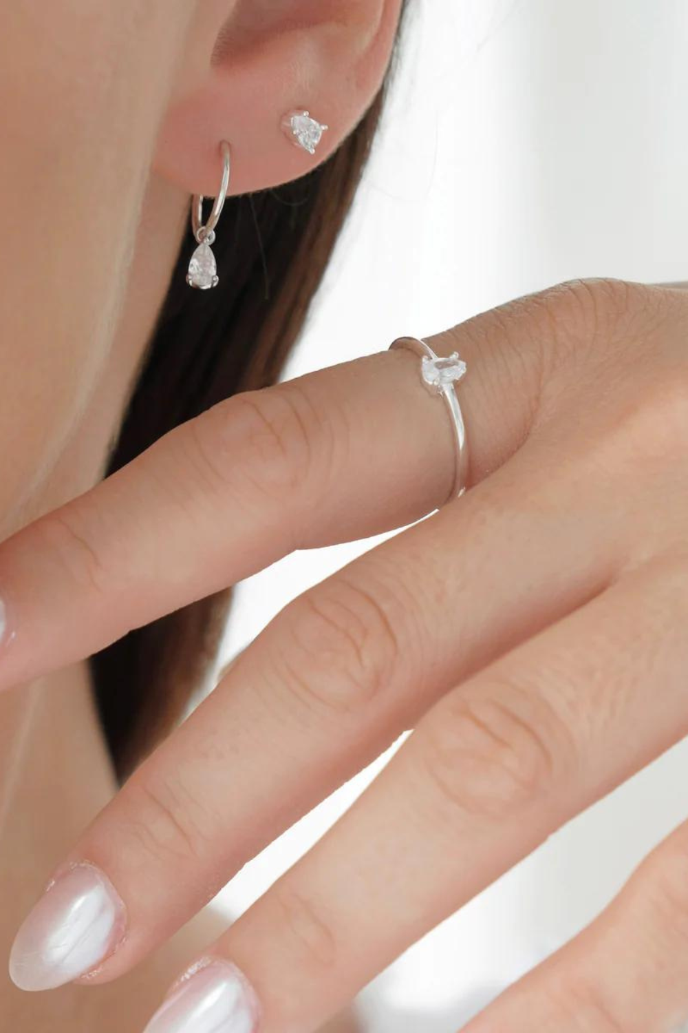 The Valentine Mini Hoops will be your go-to-style for everyday sparkle. Featuring pear shaped stones suspended from faceted sleepers, these delicate hoops are perfect for an earring stack or classic simplicity worn on their own. Complete your look with our matching Valentine Bracelet and Valentine Ring.