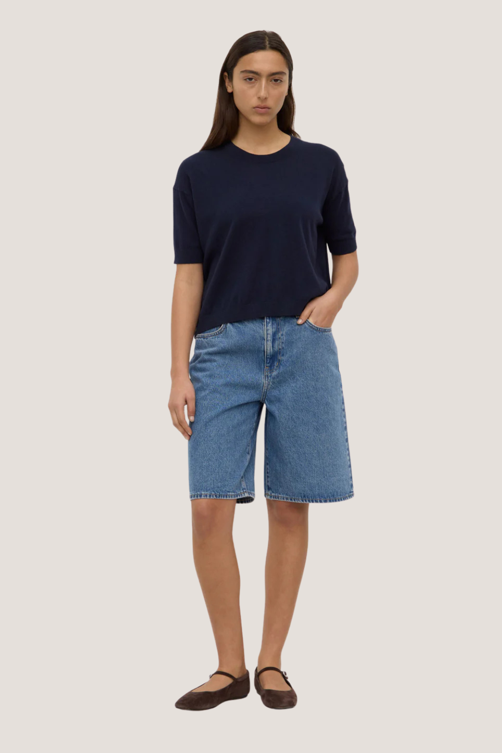 Vanya Cotton Cashmere Knit Tee | True Navy