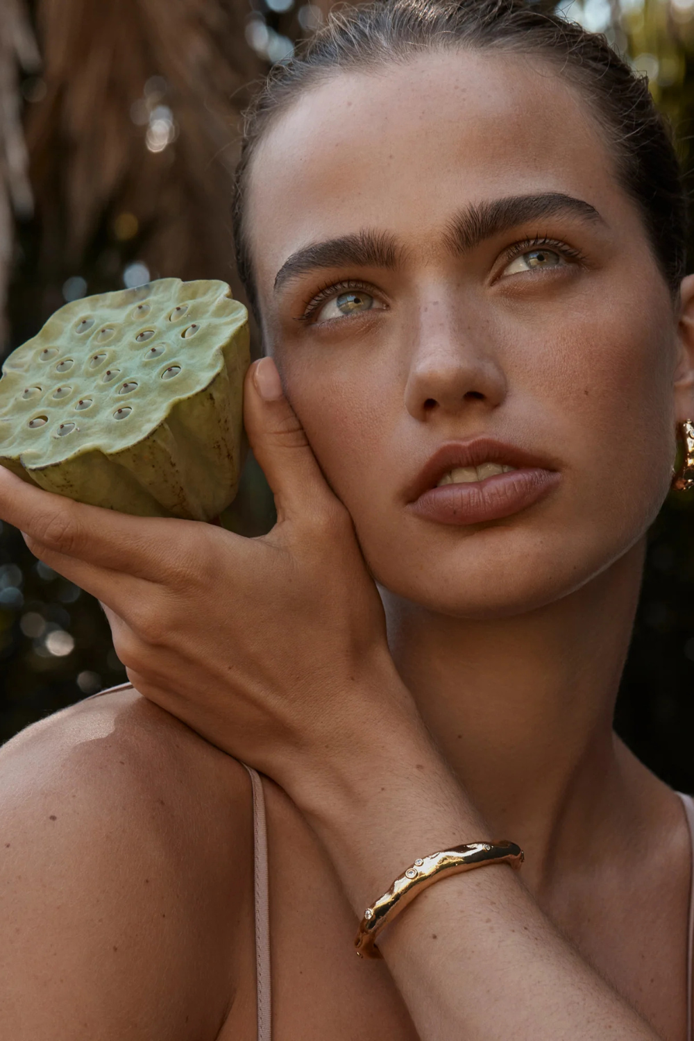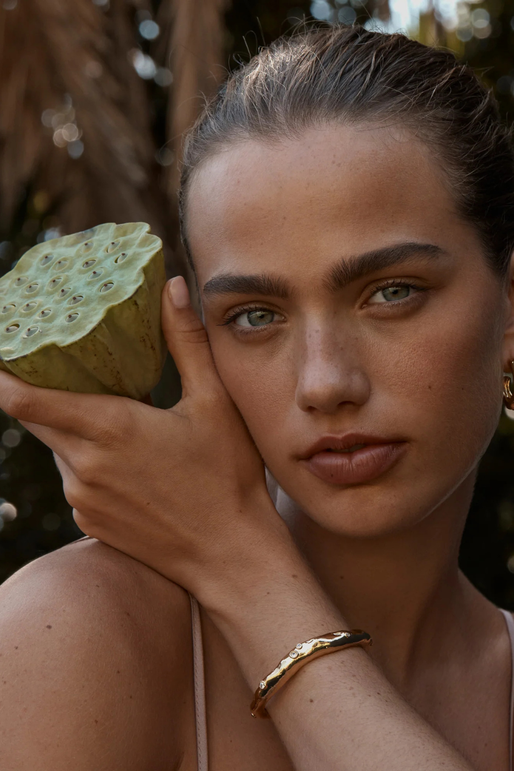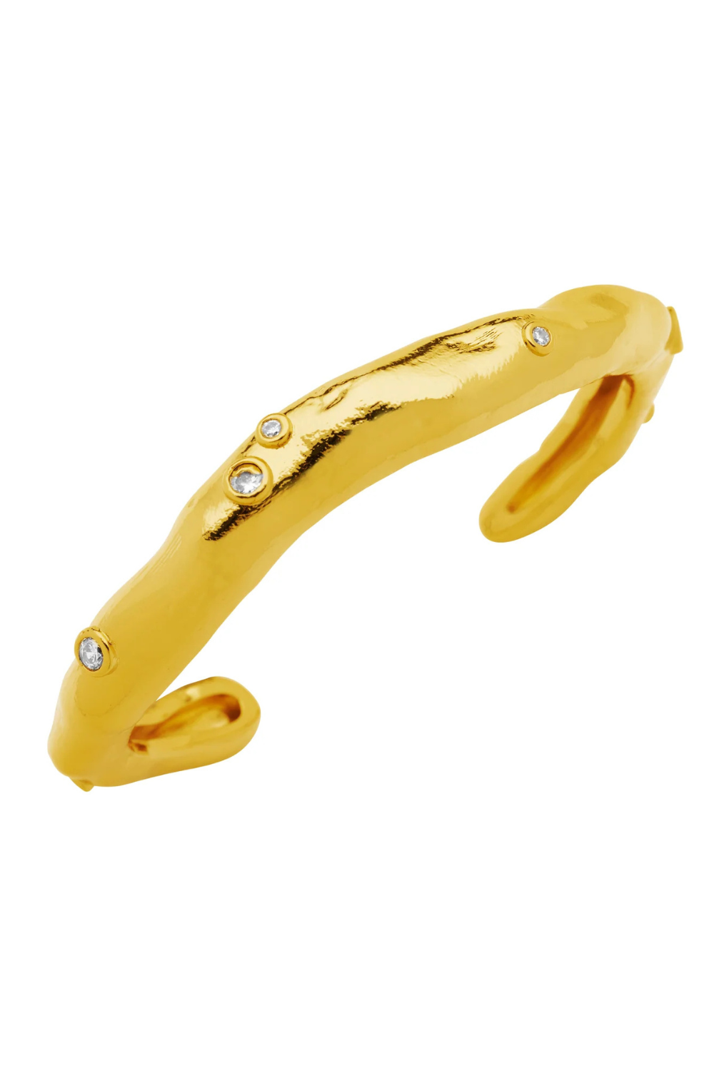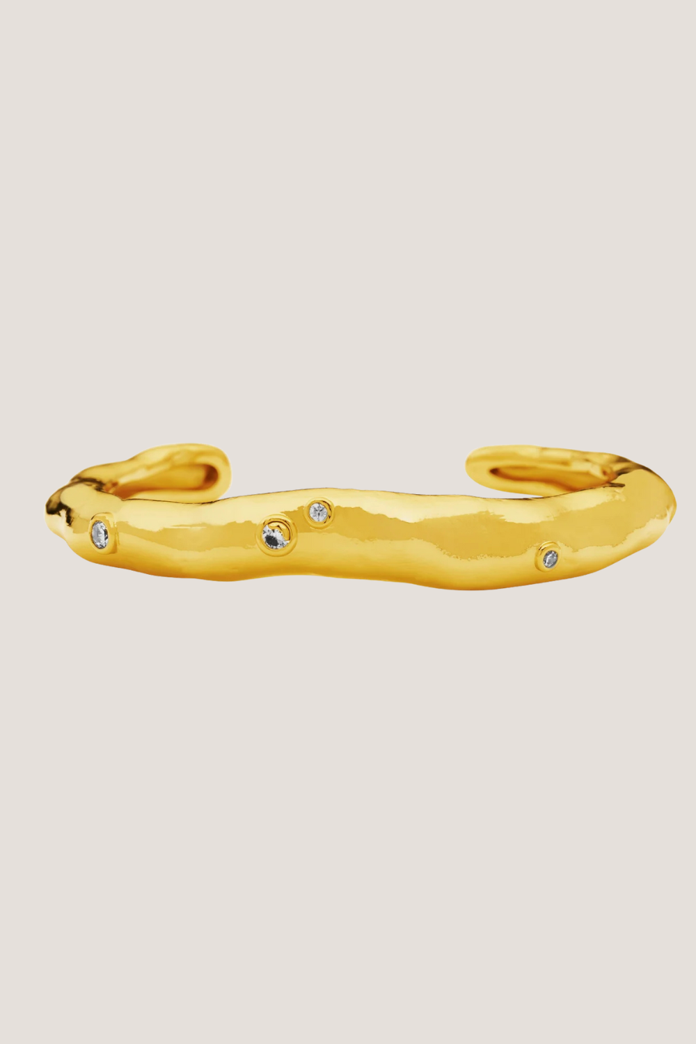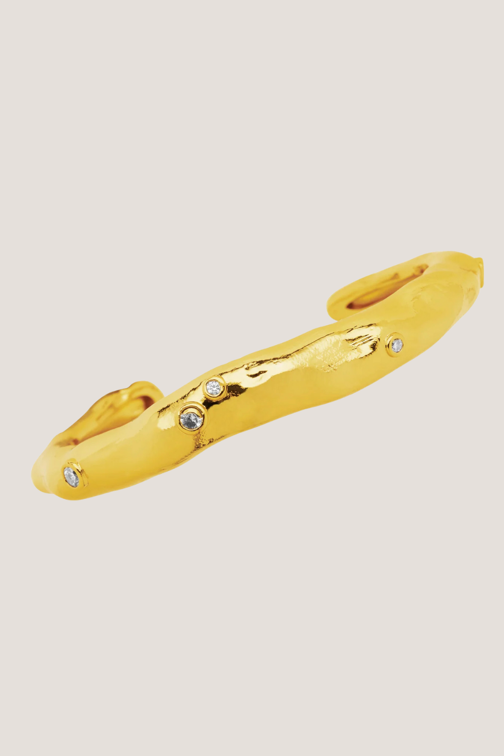 The Wisteria Bracelet is a polished organic shaped cuff embellished with cubic zirconia crystals. Wear yours with the matching Wisteria Earrings. Handcrfated in Italy.