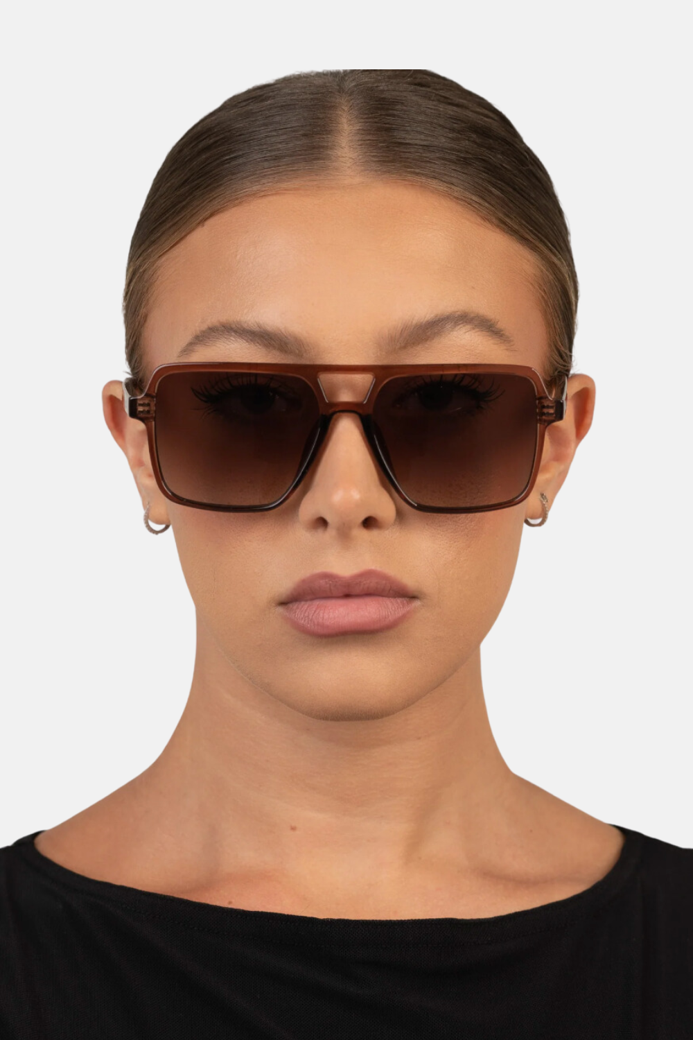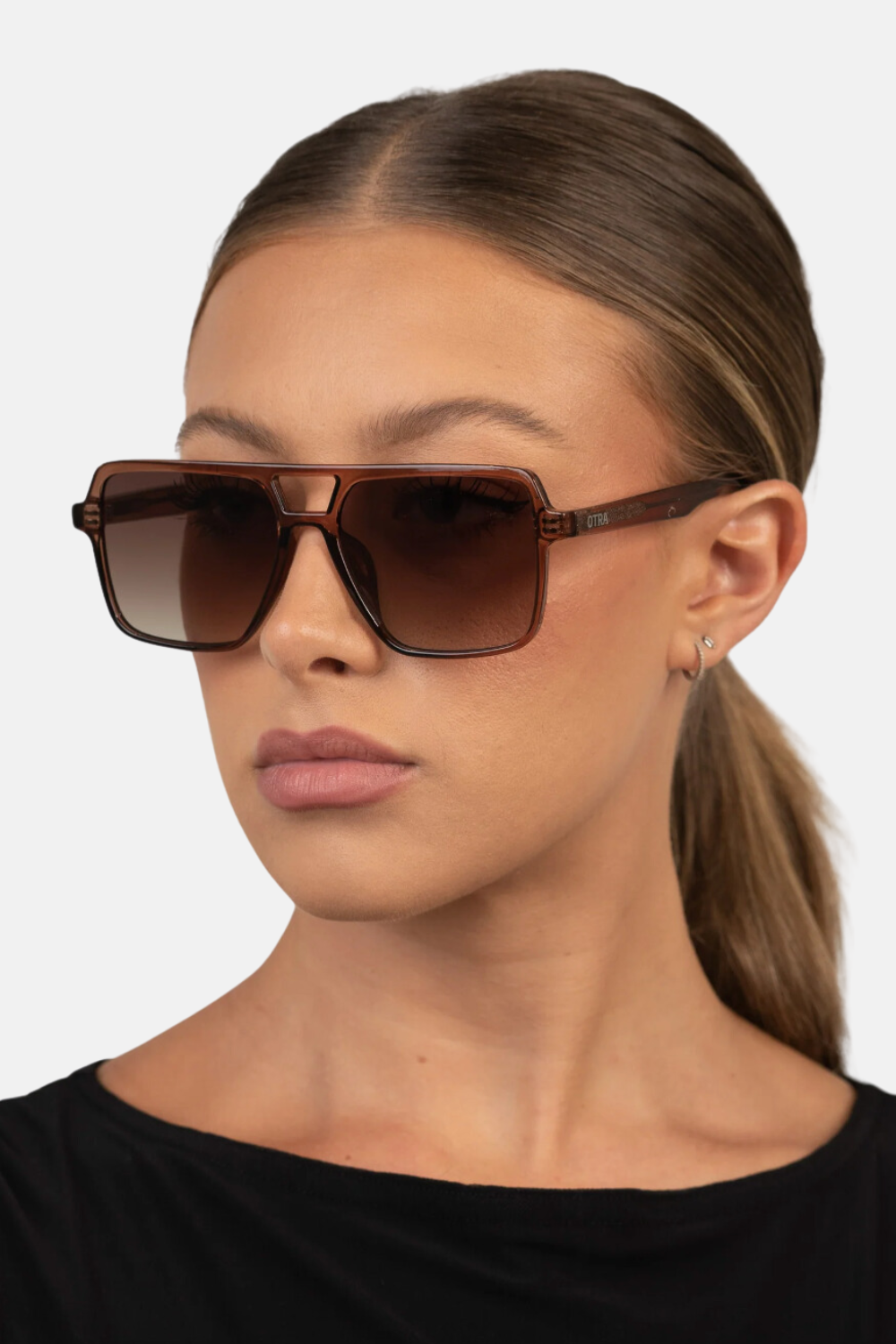 OVERSIZED TRANSPARENT MAPLE SQUARE AVIATOR WITH A BROWN FADED LENS